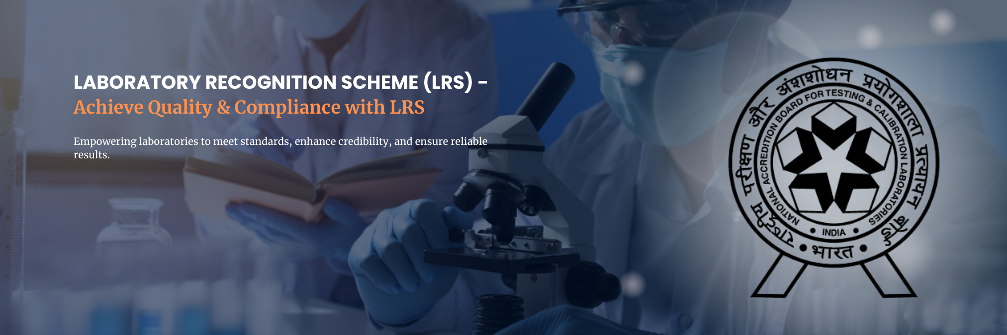 Established under the BIS Act, 2016, and governed by the BIS Rules, 2018, the LRS allows laboratories to be officially recognized for testing products against Indian Standards. The National Accreditation Board for Testing and Calibration Laboratories (NABL), an autonomous body under the Department for Promotion of Industry and Internal Trade (DPIIT), Ministry of Commerce and Industry, Government of India, provides accreditation to these laboratories in various fields such as Biological, Chemical, Electrical, Electronics, and Mechanical, in accordance with ISO/IEC 17025, 17043, and 17034 standards.